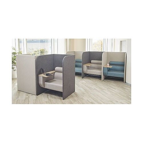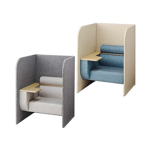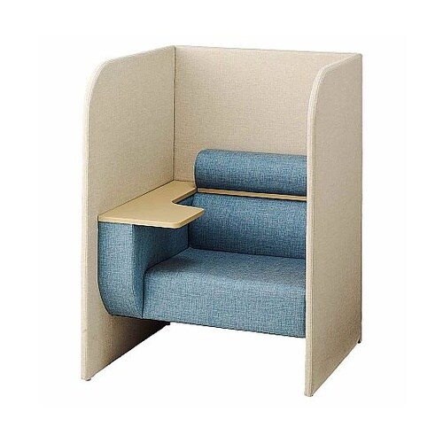 視線を遮るパネルが、作業の集中度や休憩の質を向上。 ゆったり座れるシートと、背面・側面のパネルを組み合わせたテーブル付のブース型ソファ。