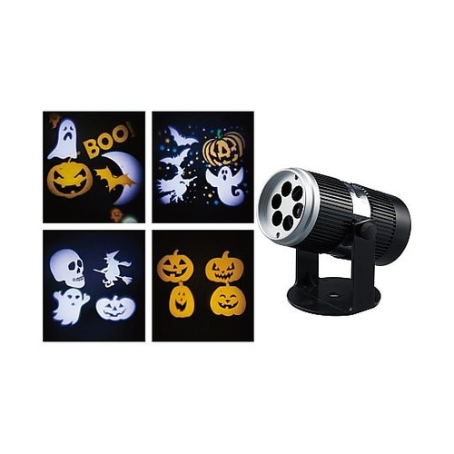 カボチャ、オバケ、ガイコツ、魔女。カートリッジ差し替えで映すデザインを変更できます。 |