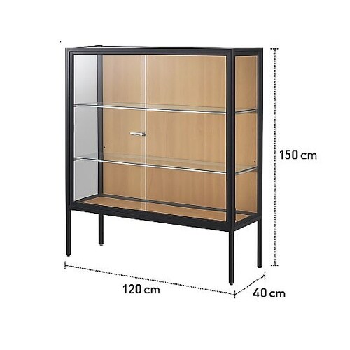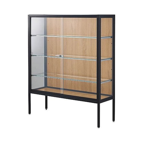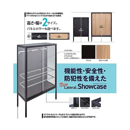 お店、ショールームの雰囲気を損なわないクールなブラックフレームのショーケースです。高さ150cmタイプは中央使いでお店のポイントにもなります。組立簡単設計で15ー30分で組み立てられます。 |