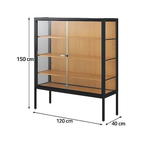 お店、ショールームの雰囲気を損なわないクールなブラックフレームのショーケースです。高さ150cmタイプは中央使いでお店のポイントにもなります。組立簡単設計で15ー30分で組み立てられます。 |
