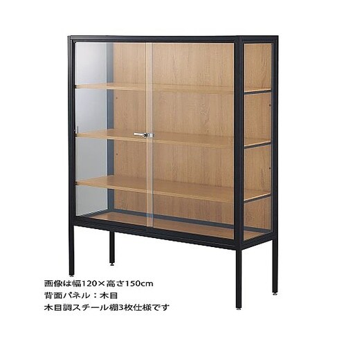 ラテラルショーケース 幅120×高さ150cm【背面パネル:木目柄/木目調スチール棚5枚】 61−830−46−4 1台