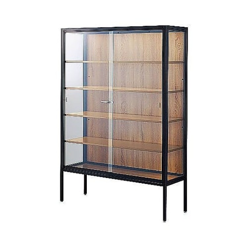 お店、ショールームの雰囲気を損なわないクールなブラックフレームのショーケースです。組立簡単設計で15ー30分で組み立てられます。 |