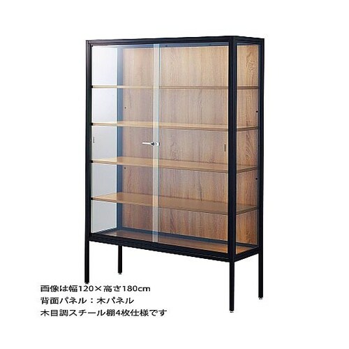 ラテラルショーケース 幅120×高さ180cm【背面パネル:木目柄/木目調スチール棚6枚】 61−830−50−4 1台