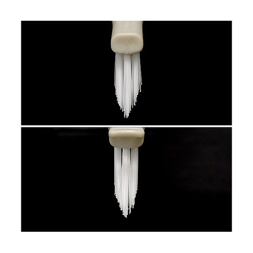 細かな溝・凸凹の奥まで届くブラシキッチンや浴室・洗面所等の蛇口まわりの狭い所、すき間のお掃除にV型のカットしているブラシの先端が細かい所の汚れをかき出します。 |