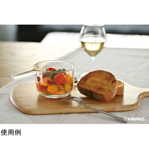 電子レンジもオーブンも使えるガラスの小鍋です。便利な保存フタが付いています。取っ手付きで持ちやすいです。調理してそのまま食卓に出せるおしゃれなデザインです。 |
