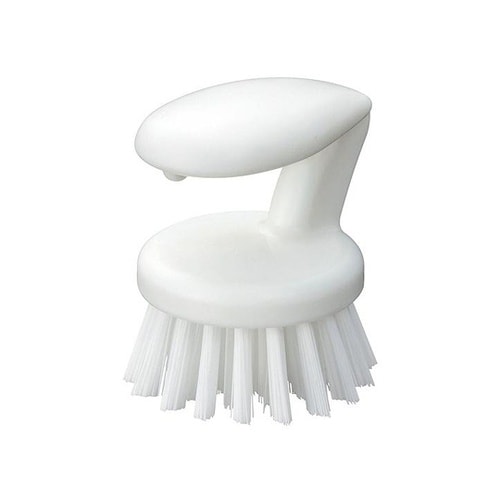 スポンジでは洗いにくいザルやまな板の網目に詰まった汚れを、コシの強いポリプロピレン毛でしっかりかき落とせます。グリップは握りやすく力を入れやすいデザインです。 |