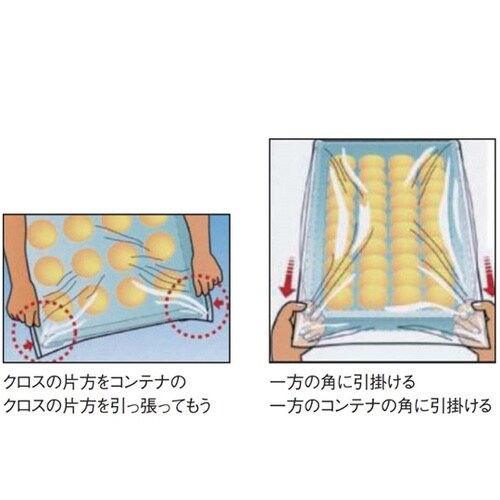 ばんじゅう(コンテナ)の内容物の異物混入対策として最適コンテナへの装着方法を簡略化しました。保管スペースの少量化をはかりました。 |