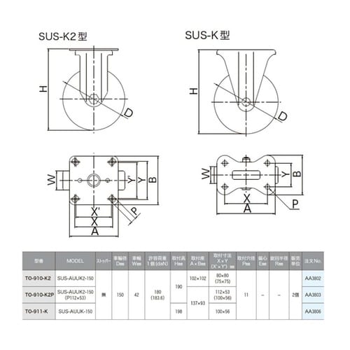 固定型プレート式(ストッパー無) ステンレスキャスター アルティメットウレタン (2個入) TO−910−K2P 1個