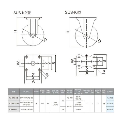 固定型プレート式(ストッパー無) ステンレスキャスター アルティメットウレタン (2個入) TO−911−K 1個