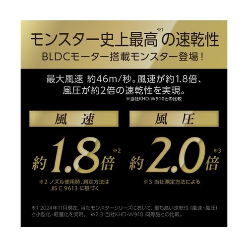 モンスター史上最高の速乾性とミニマム化を両立。BLDCモーター搭載の上位モデル。温風と冷風が自動で切替。熱ダメージを抑え、ツヤ感のある髪へ。スカルプ機能搭載で肌と地肌にやさしい低温風。 |