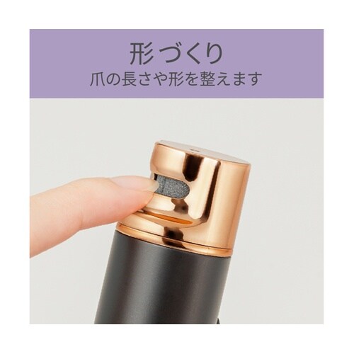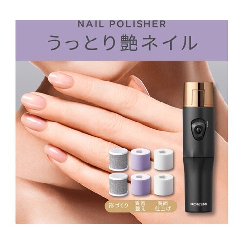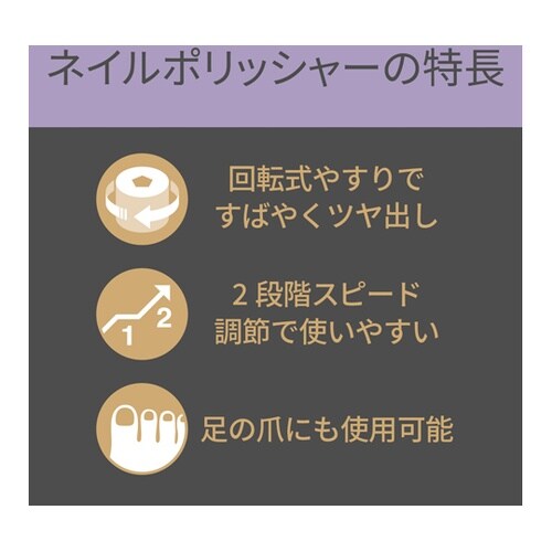 自宅でエステ、艶ピカすっぴんネイル。トップコートを塗ったようなツヤのある美しい爪へ。形づくりもサポート。表面整え、表面仕上げ、形づくりの3種のアタッチメント付き。 |