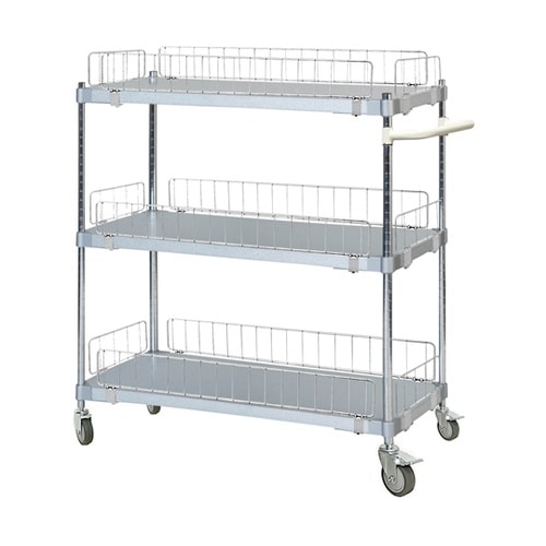 アズワン 柵ガード付ガルバリウムワゴン W910×D460×H900mm 3段 WH ASTGGS3−46909WH−GR 1セット A09F-5512
