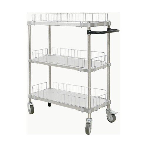 アズワン 柵ガード付ガルバリウムワゴン W910×D350×H900mm 3段 BK ASTGGS3−35909BK−GR 1セット A09F-5577