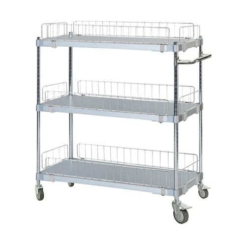 アズワン 柵ガード付ガルバリウムワゴン W910×D460×H900mm 3段 SV ASTGGS3−46909SV−GR 1セット A09F-5606