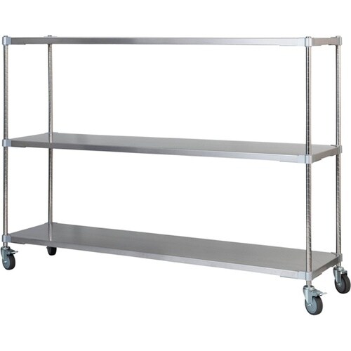 棚板・SUS304ステンレス、コーナー部・アルミダイキャスト(紛体塗装)、ポール・SUS304ステンレス、キャップ・ナイロン、アジャスター・SUS304ステンレス、テーパースリーブ・ABS樹脂、キャスター・スチール