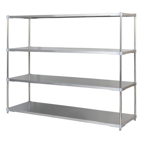 棚板・SUS304ステンレス、コーナー部・アルミダイキャスト(紛体塗装)、ポール・SUS304ステンレス、キャップ・ナイロン、アジャスター・SUS304ステンレス、テーパースリーブ・ABS樹脂