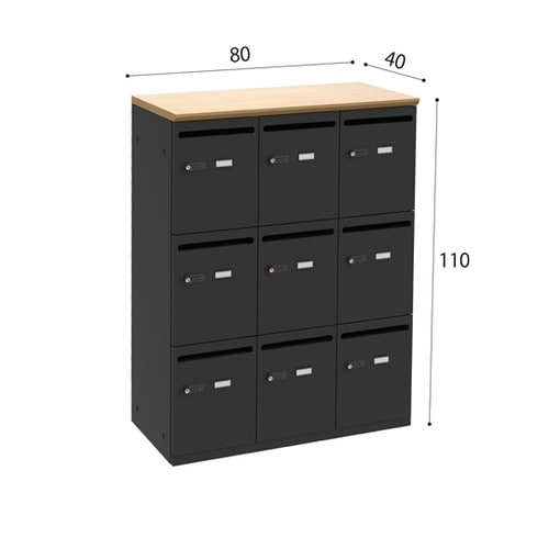 Y2K パーソナルロッカー9人用 ナチュラル/ブラック SSC−09−NABK 1台 A09F-5996