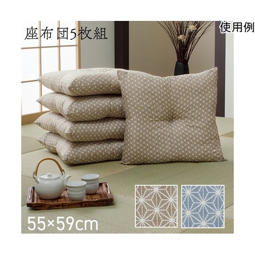 座布団 洗える 銘仙判 日本製 セット 盆 来客 和洋室 和柄 麻の葉 ベージュ 同色5枚組 1240870022308 1セット