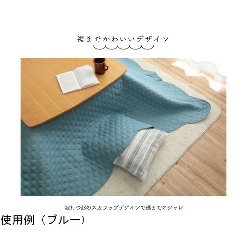 ベッドスプレッドやこたつカバー、ソファカバー、ホットカーペットカバーなど、一年中活躍できるマルチカバーです。糸を使わない超音波キルト加工を施しているため、糸切れの心配がありません。 |