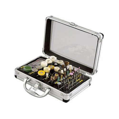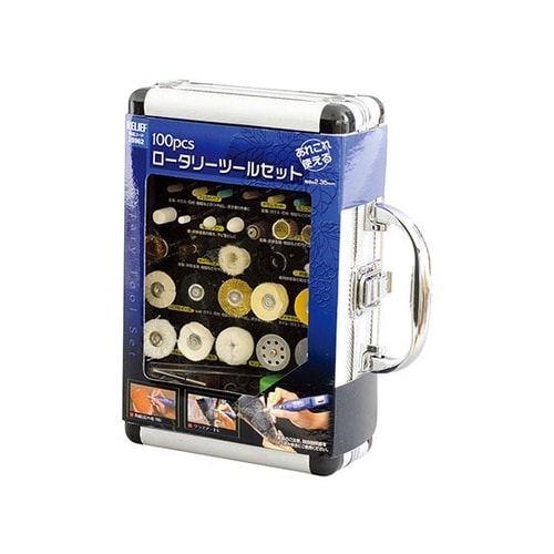 金属、非鉄金属、石材、ガラスなどの研磨、穴あけ、切削に使用できる先端がセットされています。 |