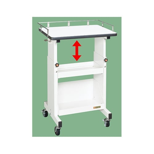 パソコンを置いての作業に最適。軽作業にもお使い頂けます。高さ700ー900mmの範囲で任意高さに調整可能。天板は3方コボレ止め付。予期せぬ衝撃で天板上のパソコン等の落下を防ぎます。 |