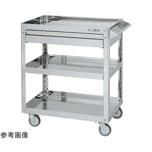 ステンレススーパーワゴン(SUS304/プレート式ナイロンウレタン車/スチール金具仕様/引出付)W600×D400×H880mm SAP3−6083ANUJ 1個