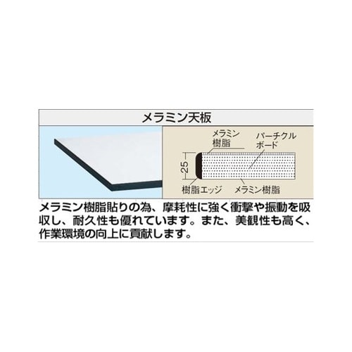 メラミン天板を使用しているワークテーブルはメラミン樹脂張りの為、摩擦性に強く耐久性も優れています。