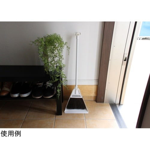 置き場所に困らないチリトリ付ほうき。腰をかがめず掃ける。 |