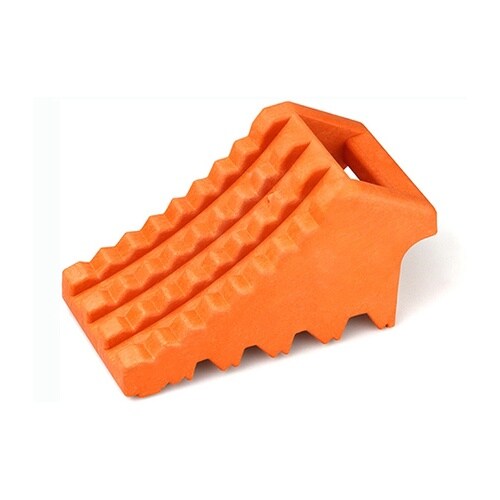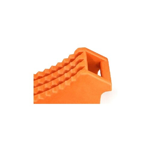 軽くて扱いやすい!樹脂製タイヤストッパー視認性の高いオレンジ色が、置き忘れ防止になります。 |