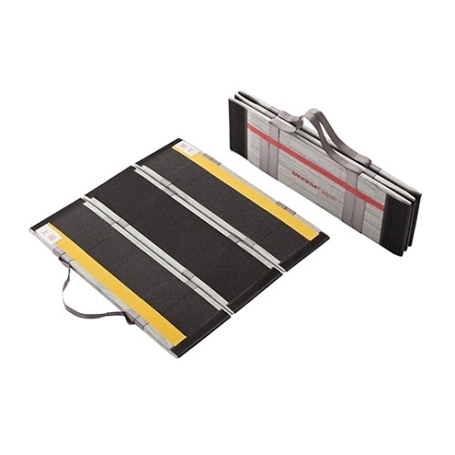 種類が豊富で高段差にも対応した可搬型スロープです。表面の特殊な滑り止め加工や、上下端のズレ止めラバーグリップにより安心してご利用いただけます。エッジのない3つ折りタイプ。 |