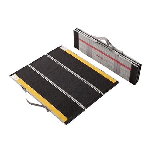 種類が豊富で高段差にも対応した可搬型スロープです。表面の特殊な滑り止め加工や、上下端のズレ止めラバーグリップにより安心してご利用いただけます。エッジのない3つ折りタイプ。 |