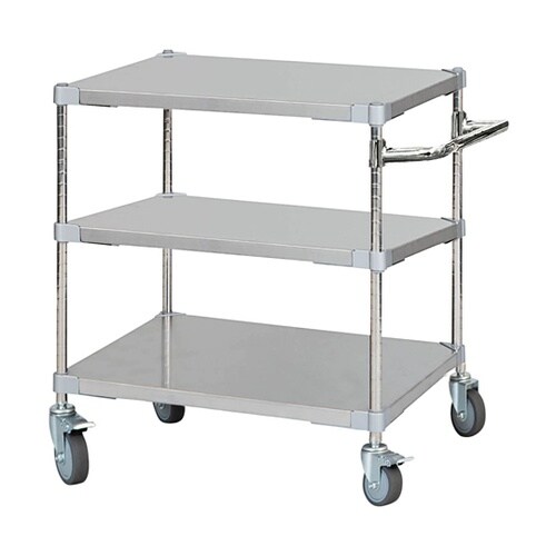 ステンレスシェルフワゴン60×76cm 3段キャスター H700mm 取っ手付き SV TSSW3−60767SV 1個 A09F-6832