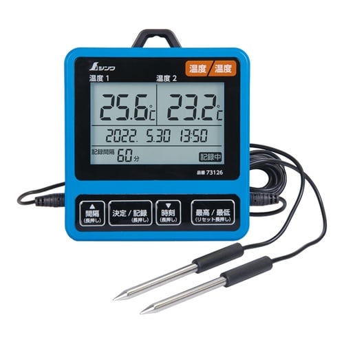 温度変化を記録するデータログ機能付の二点隔測式温度計です。汚れても水洗い可能なので、屋外でも安心して使用できます。 |