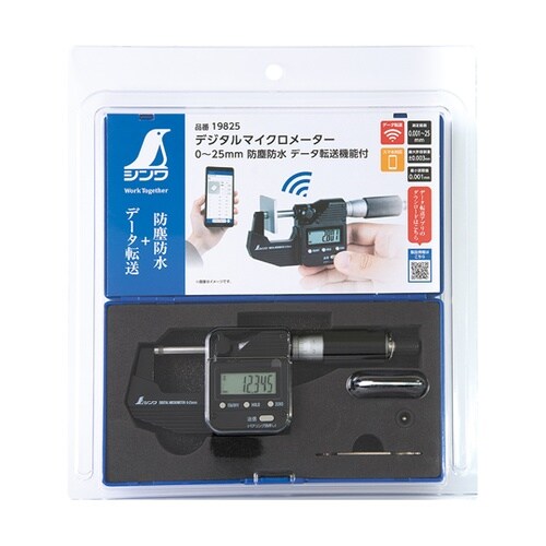デジタルマイクロメーター 0ー25mm 防塵防水 データ転送機能付 19825 1個
