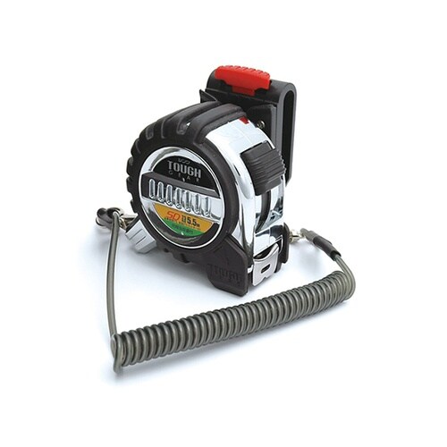 摩耗に強く、キズつきにくいナイロンコートスチールテープを採用。ワイヤー芯が入った丈夫な落下防止コード付です。 |