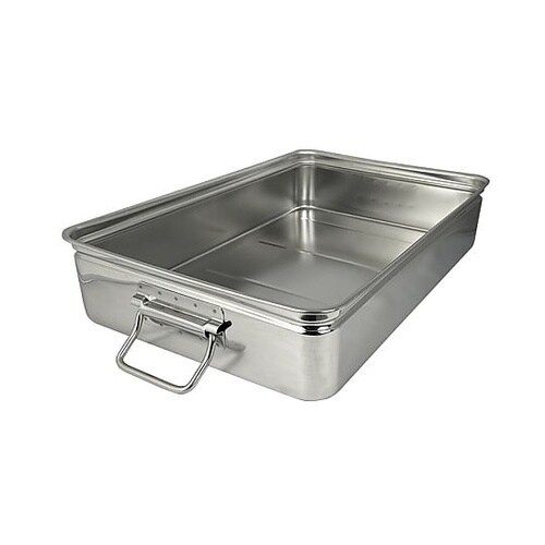 食品工場、給食センターなどで食材や料理の運搬、保管に広く使われているバットです。食材や料理を入れた状態で積み重ねができます。可動取手付です。耐久性と耐食性に優れたステンレス製です。 |