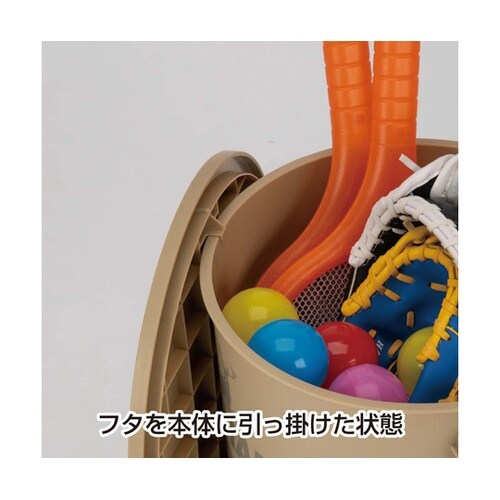 座れる、フタ付きバケツ。フタには引っ掛けられるフック4箇所付。アウトドアの収納、レジャーの収納に。 |
