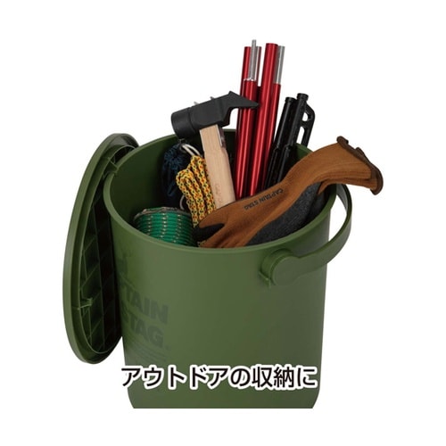 座れる、フタ付きバケツ。フタには引っ掛けられるフック4箇所付。アウトドアの収納、レジャーの収納に。 |