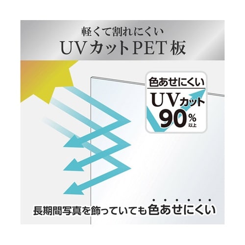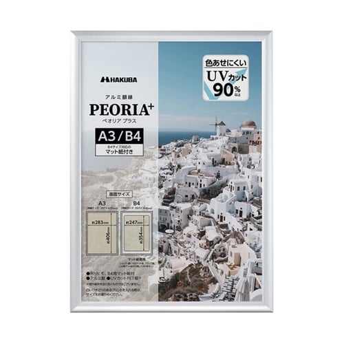 UVカットPET板を使用したシンプルなデザインのA3サイズ用アルミ額縁。B4サイズも飾れるマット紙(中額)付き。