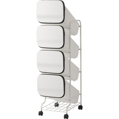 容量:57L(19L×4) | 色:ホワイト | その他仕様:材質 | ▼本体・フタ・袋止め:PP | ▼フラップ:ABS樹脂 | ▼歯車・キャスター…