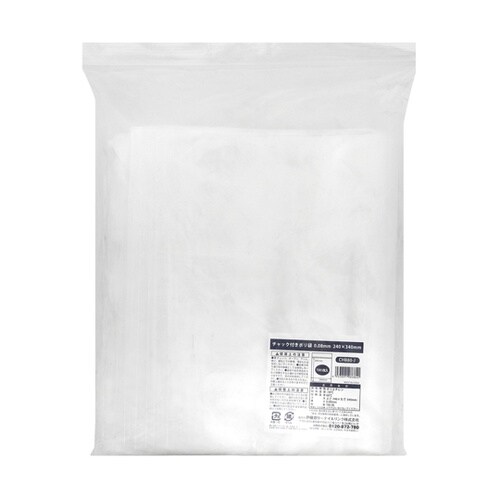 フィルム厚0.08mmのチャック付ポリエチレン袋です。日用雑貨・食品など幅広い用途に使用できます。食品衛生法試験適合品です。 |