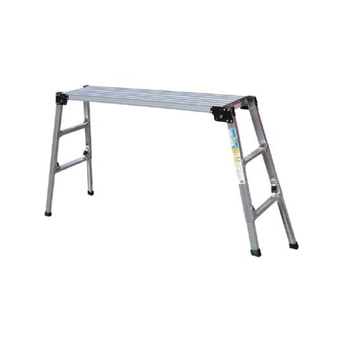 折りたたみはロックピン方式ですのでツマミ操作をするだけで簡単にたためます。四脚とも4mmピッチで調節可能なアルミ製足場台です。 |