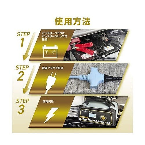 ウルトラパルス振動でバッテリーが復活!自動車用・二輪車用及びDC12V/24V 電源バッテリー用の充電器です。 |