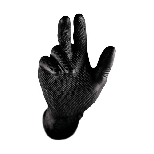 魚のウロコ形状と親指内側、そして手袋内側にも施された凹凸加工が新次元のグリップ力を実現しました。通常の薄手ニトリルゴム手袋1.5倍以上の強度を実現しました。 |