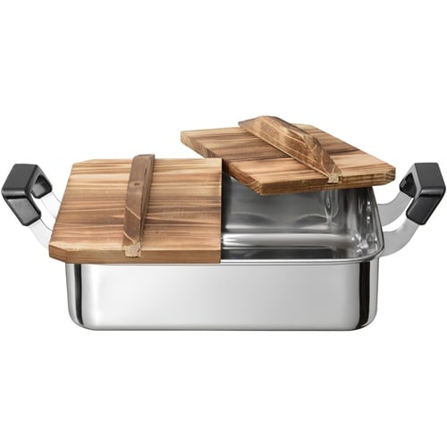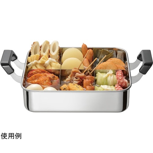 雰囲気たっぷりのおでん鍋。具材を分ける仕切り付。丈夫で長く使えるステンレス製で、ガス火専用です。 |