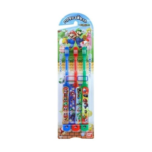 『スーパーマリオ』のハブラシが登場!ハブラシは3色で3本セット。奥歯までみがきやすい先のまるいコンパクトヘッドで、こどもにピッタリのサイズだから乳歯から永久歯に代わるまでつかえます。 |