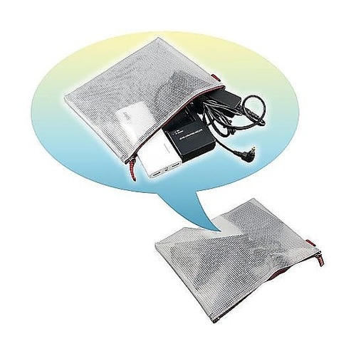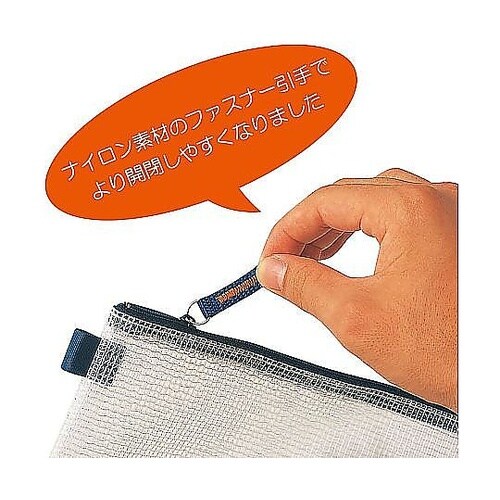 繊維の入ったクリアー生地で、重いものでも安心です。非塩ビ系オレフィン生地を使用しています。ファスナー引手には、ナイロン素材を利用し、開閉しやすいです。