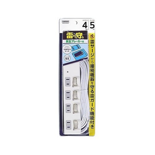 ヤザワ 雷ガード付 4個口 節電タップ 5m ホワイト H4BKS445WH 1個 A09F-7881