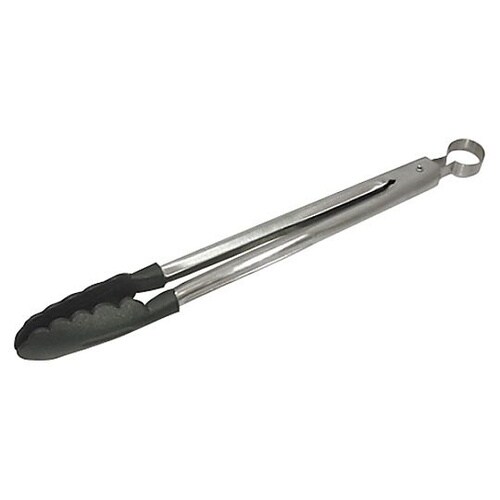 クイジプロのキッチンツールです。ロック機能のついたトングです。上部の取手をひくとロックでき、コンパクトに収納可能です。後ろの輪っかを引っ張ればロック、押せば解除できます。 |