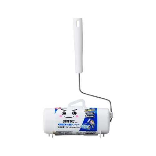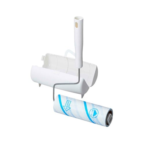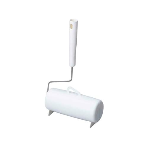 カーペット用の粘着式クリーナー、自立ケース付です。爪や指をいためず、ワンタッチで簡単にテープの取り替えができます。 |